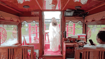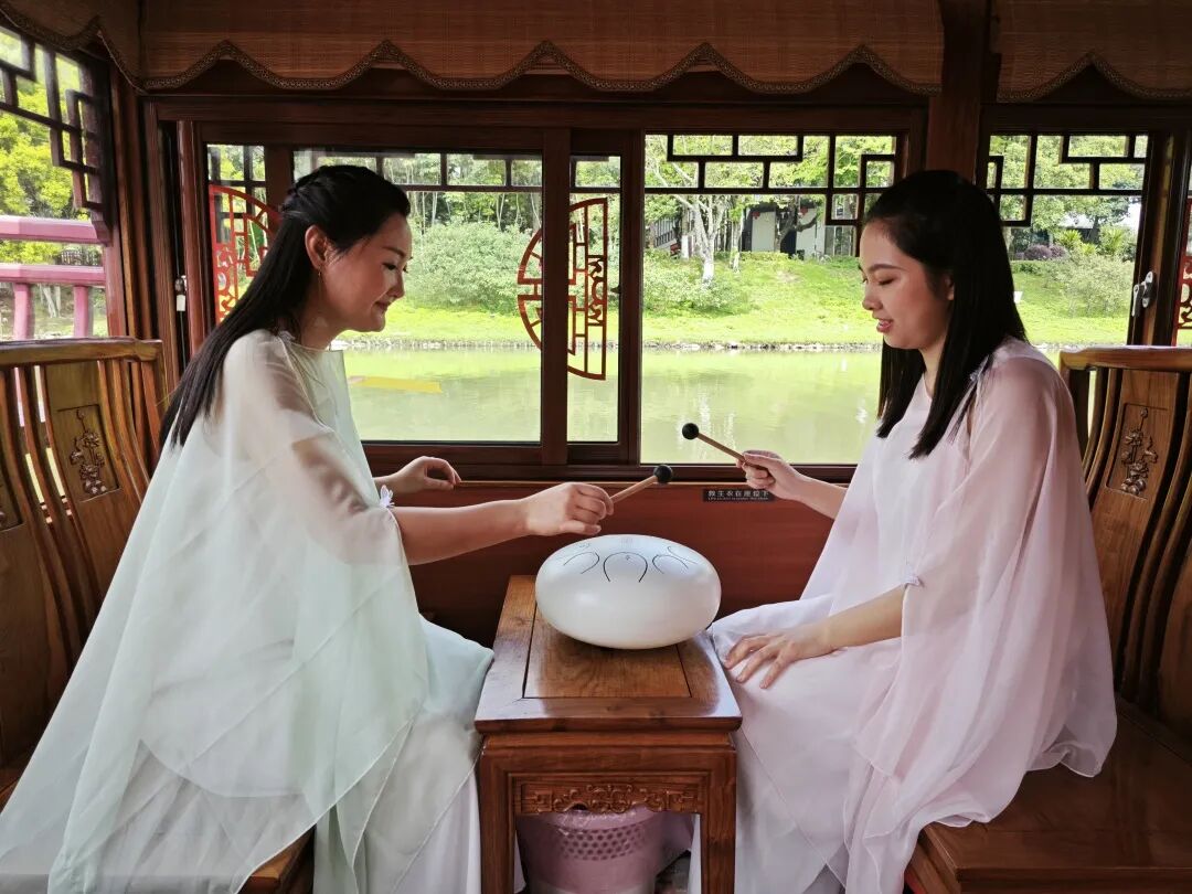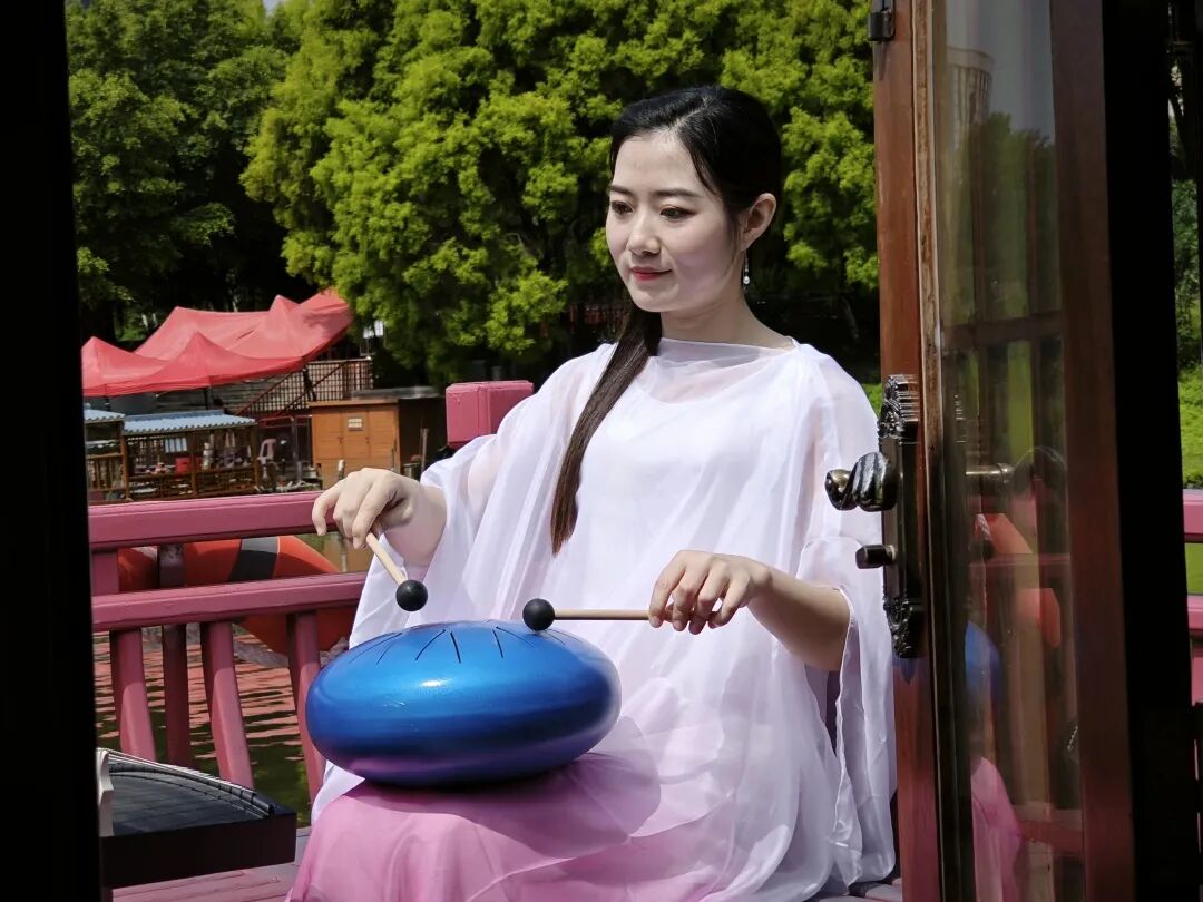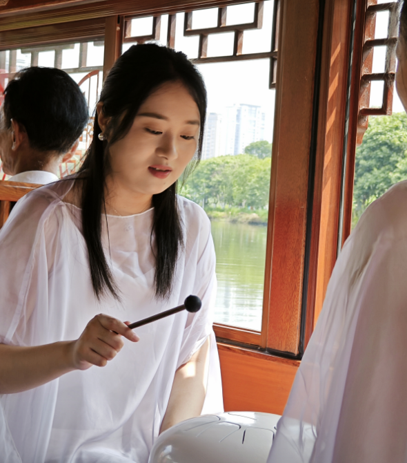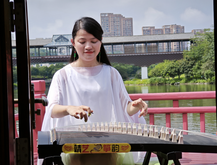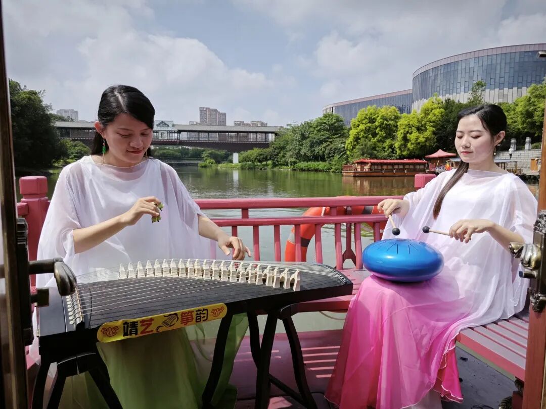 在綬溪游船上彈古曲表演