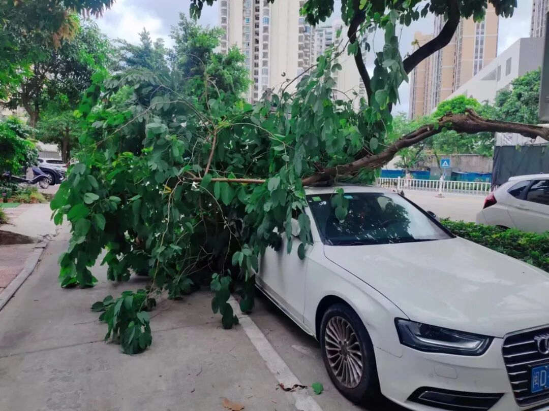 在此也提醒廣大市民,臺(tái)風(fēng)期間,請(qǐng)盡量減少出行,注意安全!不要將車(chē)輛停在樹(shù)下,盡量避開(kāi)高大樹(shù)木,盡量選擇繞行或停放到高地,避開(kāi)高空懸掛物、廣告牌、大樹(shù)等區(qū)域,避免造成傷人損車(chē)事故。