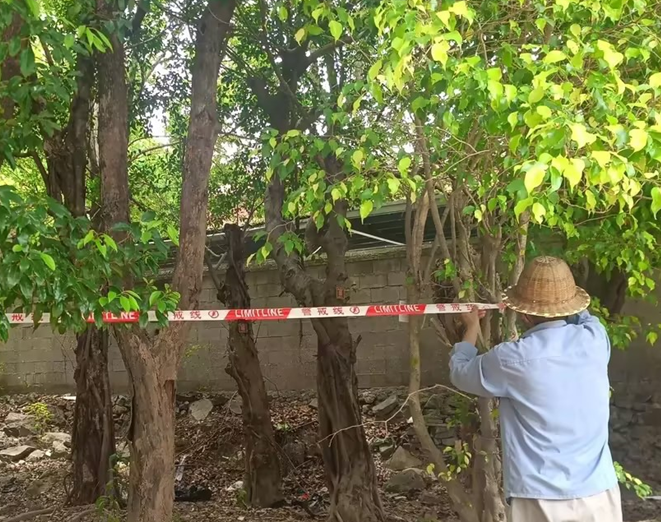▲//東巖山苗圃進(jìn)行防汛安全排查,出入封閉并拉警戒線
