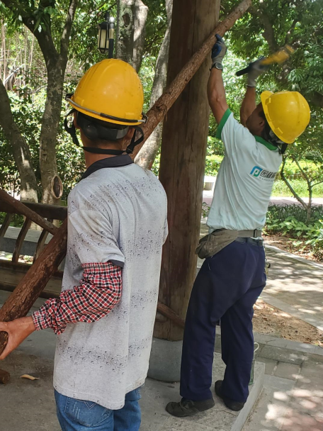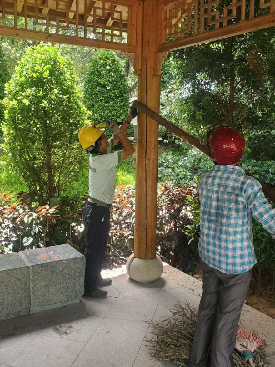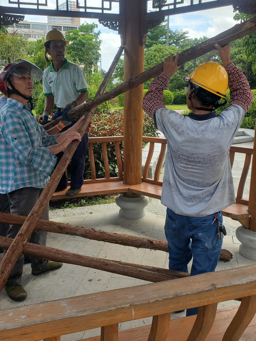 市園林集團(tuán)加大力度開(kāi)展亭子加固保護(hù)工作