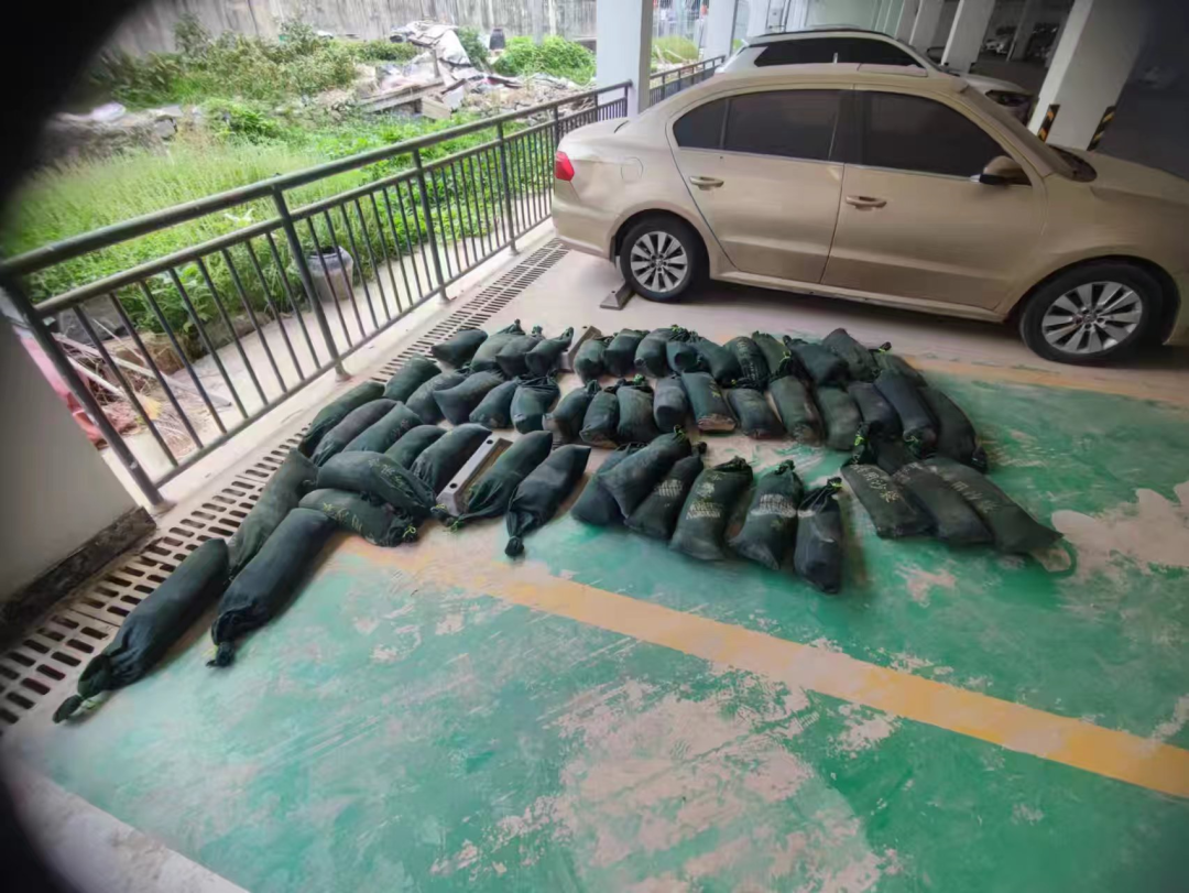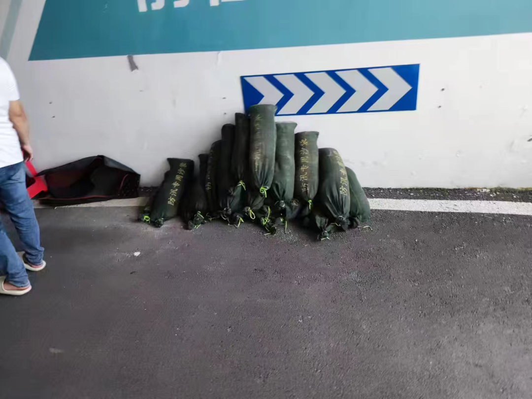 為防御地下停車(chē)場(chǎng)暴雨洪澇儲(chǔ)備了100包沙袋