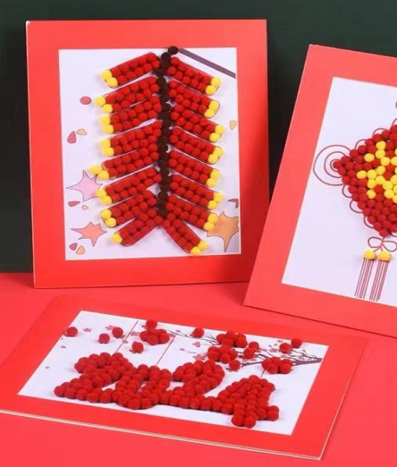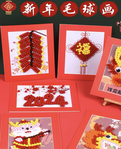 新年毛球相框畫、非遺手作剪窗花