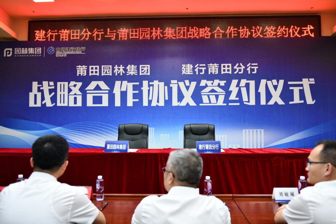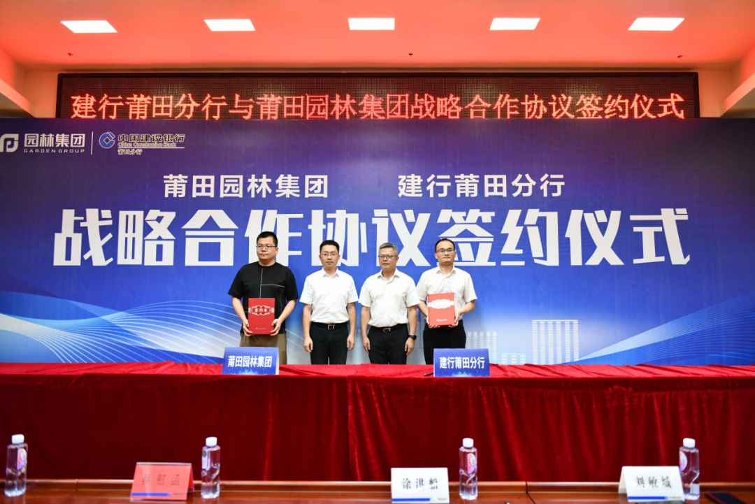 2024年5月30日下午,莆田城市園林發(fā)展集團與中國建行莆田分行舉行銀企全面戰(zhàn)略合作協(xié)議簽約儀式。園林集團總經(jīng)理蔡慰函、建行莆田分行行長涂洪船,園林集團副總經(jīng)理陳赟、建行莆田分行副行長劉敏城出席簽約儀式。