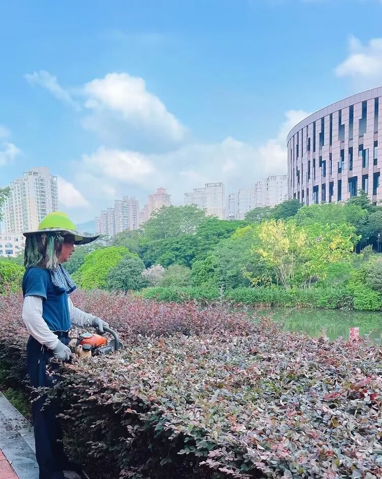 “用汗水澆灌綠茵,用辛勤呵護(hù)花木”,是園林工人精神的縮影。頭頂烈日,汗水濕透衣衫,豆大的汗珠從他們的臉頰滴落,仍每天堅(jiān)持戶外工作8小時,一絲不茍地完成每一道工序,呵護(hù)著每一處的花草樹木。