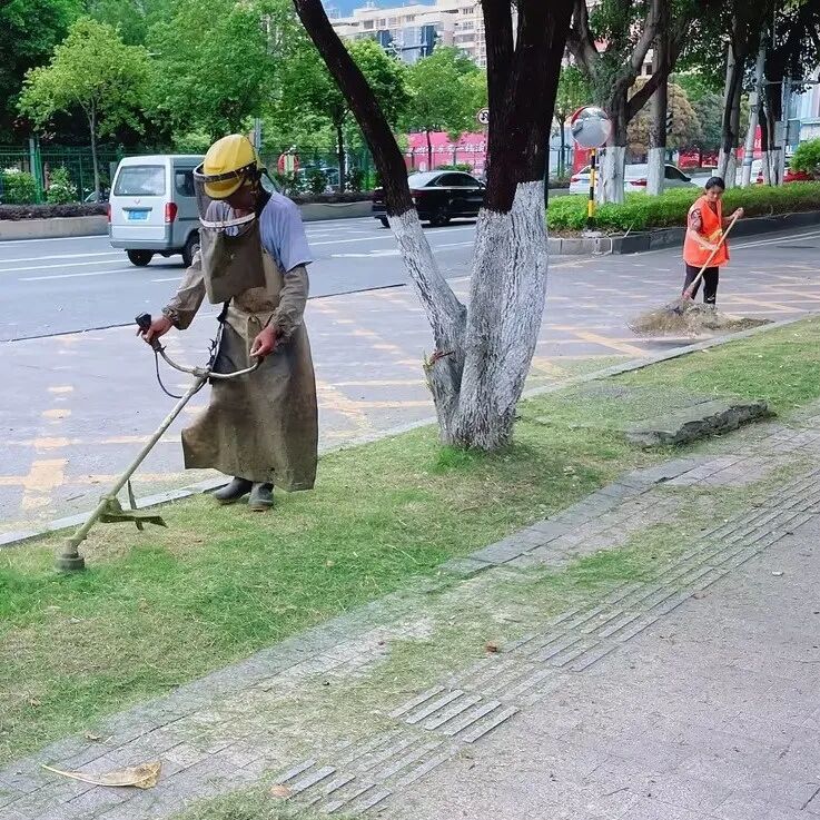 他們會為了清潔公園里某一處青苔勤懇認(rèn)真地埋頭苦干,他們會為了道路的干凈美觀彎腰拔雜草,他們忙碌的身影穿梭在草坪、綠化帶···他們頭戴遮陽帽,手拿工具、彎著腰身,熟練地做著修枝、除草、澆水、垃圾清運(yùn)等綠化管護(hù)工作,默默堅(jiān)守在自己的崗位上…