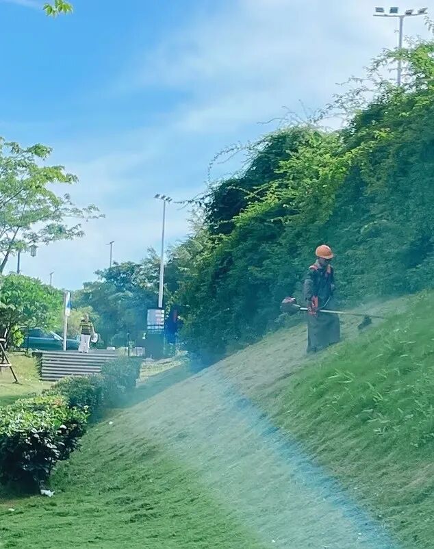 頂著夏日近40℃高溫,用手推式草坪機(jī)、登高空作業(yè)車、背負(fù)式割草機(jī)對草坪樹木進(jìn)行精心修整修剪,旨在為市民提供了一個整潔、平整、靚麗的生活、出行游玩環(huán)境。
