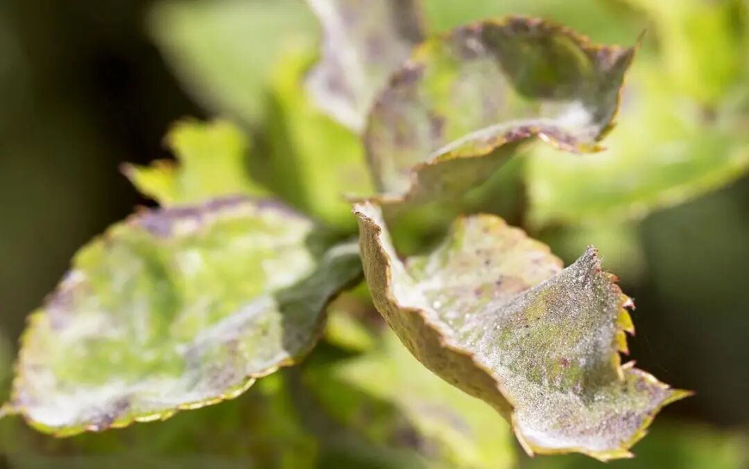 白粉病是一種常見的園林植物真菌性病害,由子囊菌亞門白粉菌目引起,該病菌侵染植物后會阻礙葉片生長,嚴重時植物完全停長。分生孢子靠氣流傳播,10天可完成一次侵染循環(huán),一個生長季節(jié)能反復侵染多次,一旦發(fā)生便很快爆發(fā)流行。